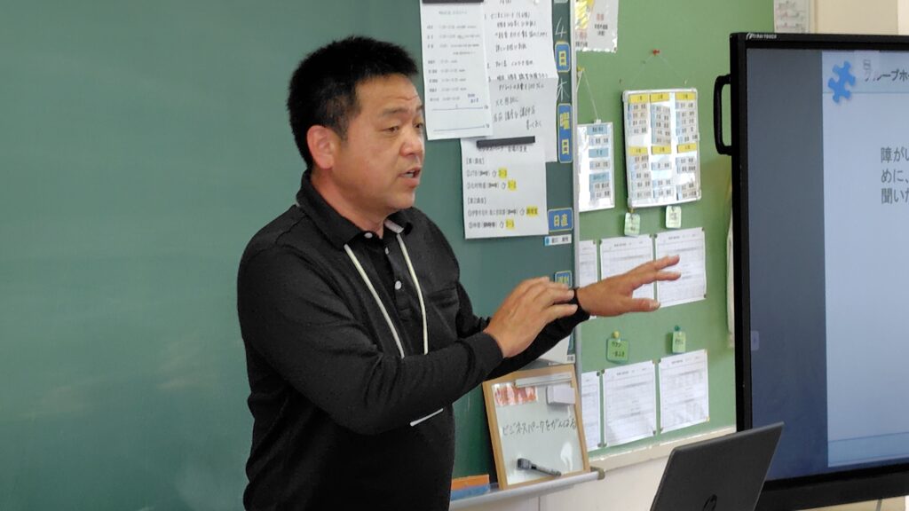 講座に出席された生徒さんはお友達と相談をしたり、自分で考えたりしながら、本人の思いとどうしたら障がいのある方も一緒に参加できるか等、お答えをして頂いていました。